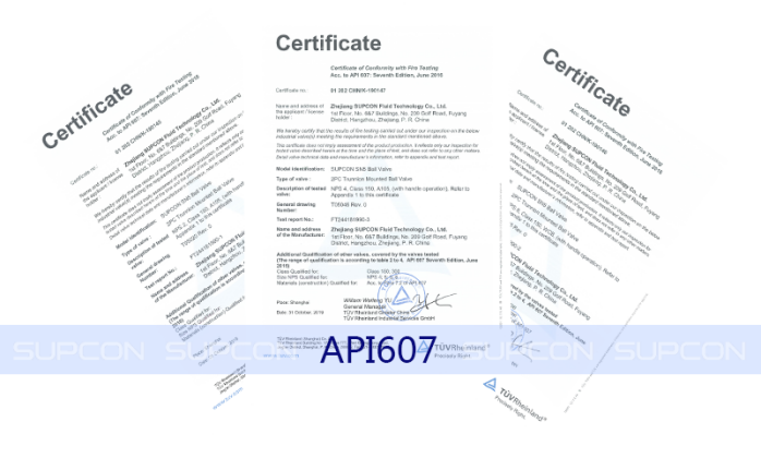 SUPCON Control valves have acquired API 607 Fireproof certification from TüV Rheinland Group